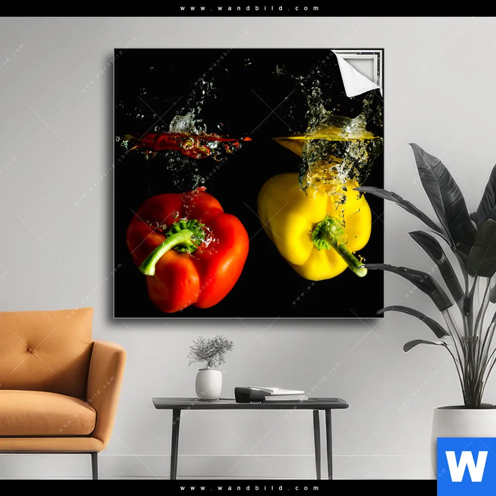 Spannbild | Spritzer von Paprika beim fallen ins Wasser | Quadrat