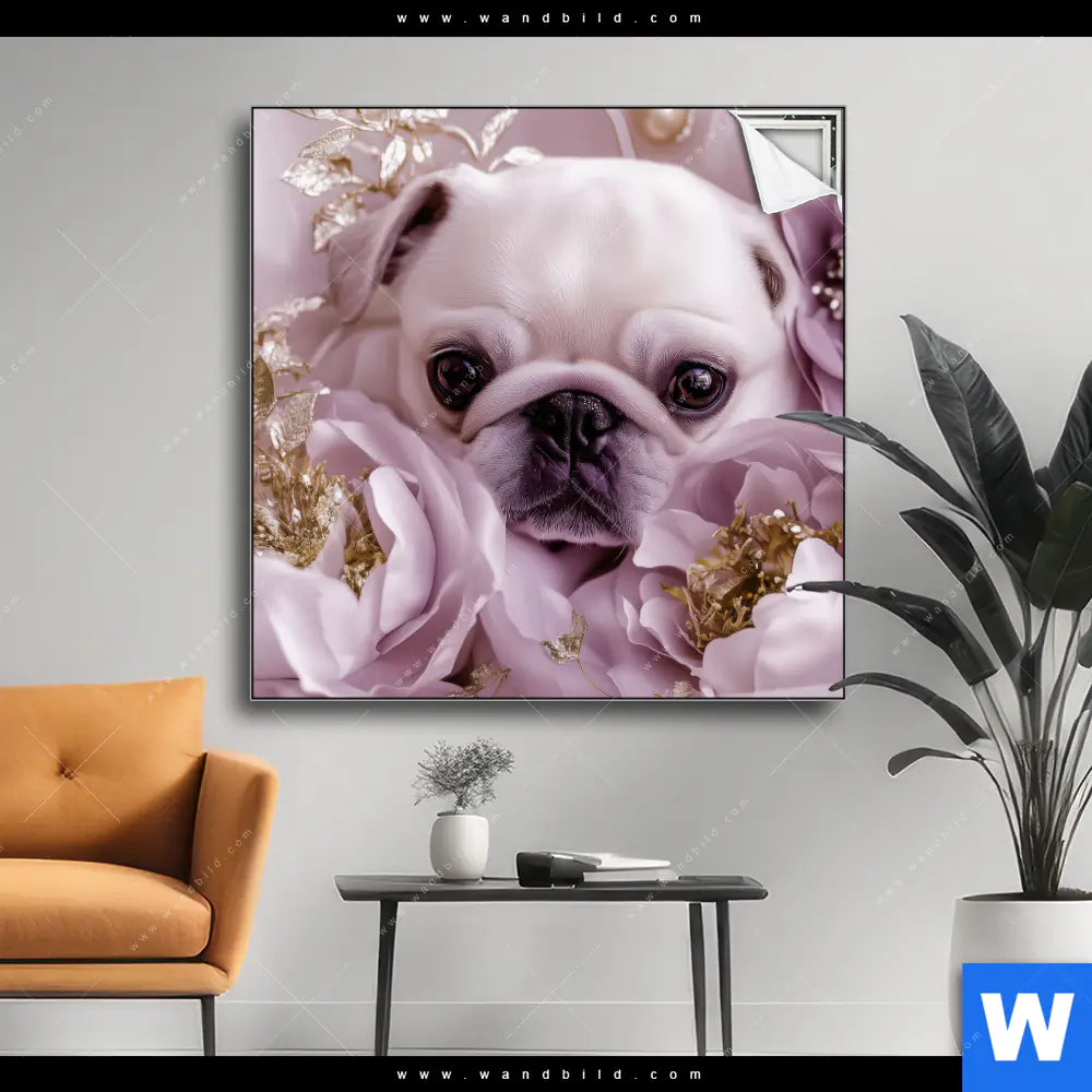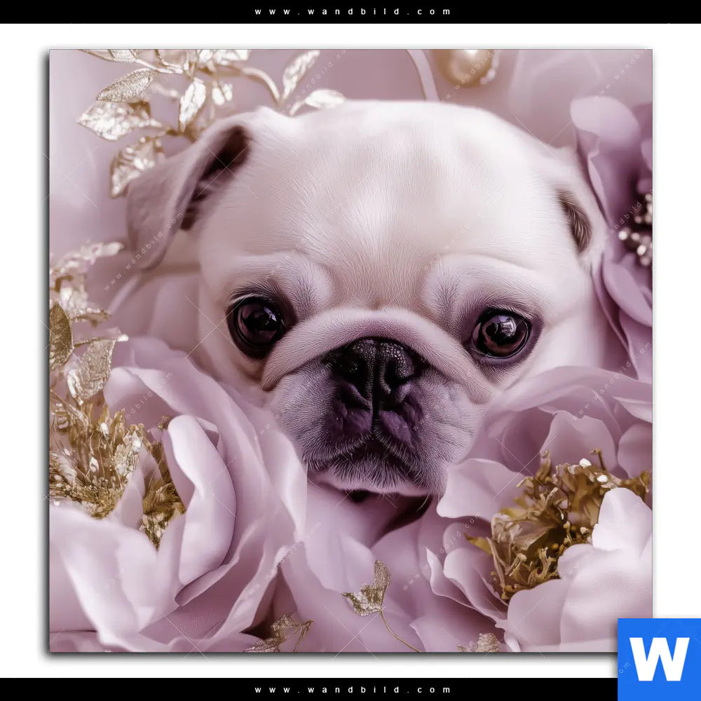 Spannbild | Mops im Blütenmeer | Quadrat