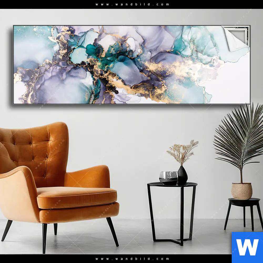 Spannbild | Fluid Art Lila & Türkis | Panorama