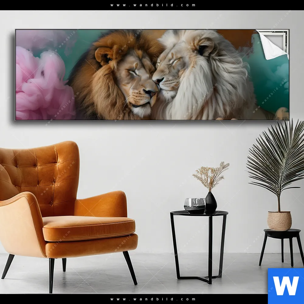 Spannbild | Sanfte Löwenmomente in buntem Nebel | Panorama
