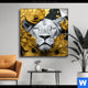 Spannbild | Weiße Löwin mit Goldblüten | Hochformat