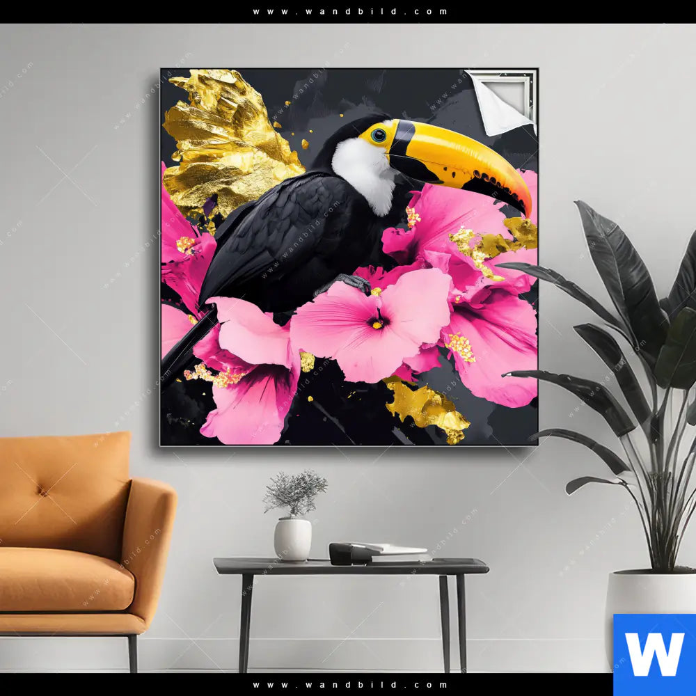 Spannbild | Exotischer Tukan mit Blüten | Quadrat