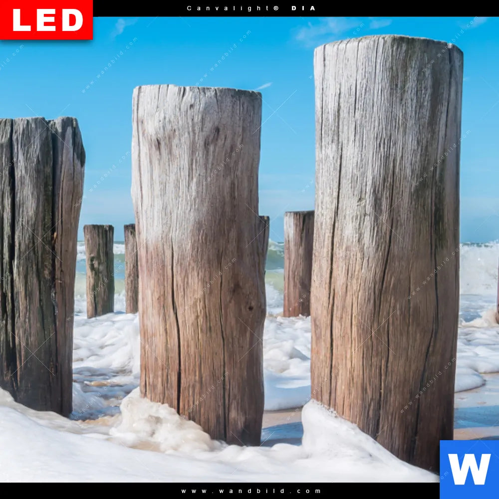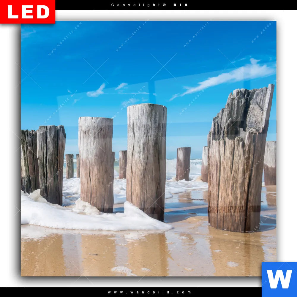 Wechselmotiv Acrylglas Canvalight® DIA | Buhnen in Wellen am Strand | Quadrat