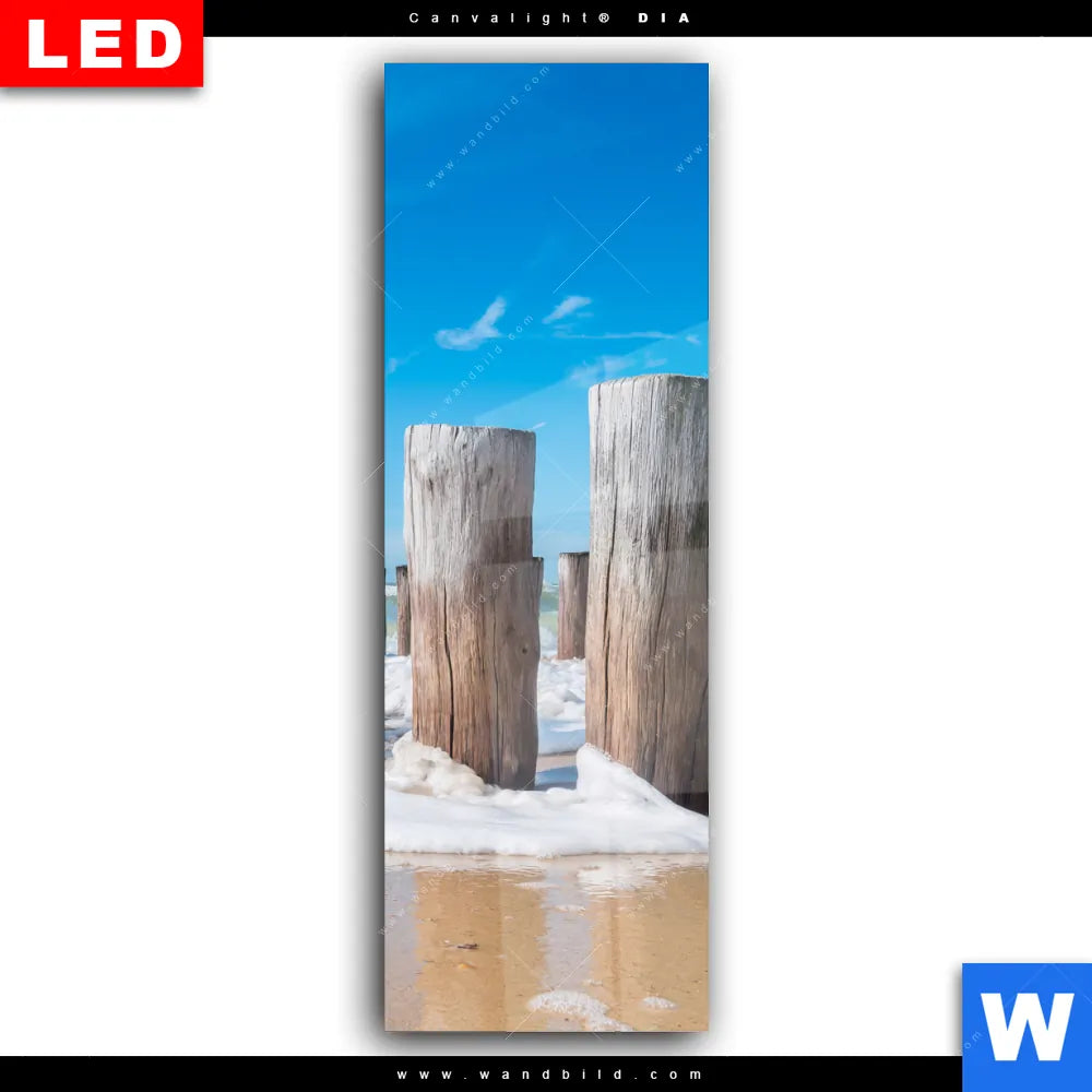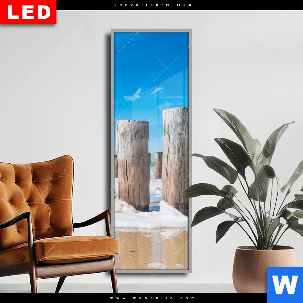 Wechselmotiv Acrylglas Canvalight® DIA | Buhnen in Wellen am Strand | Schmal