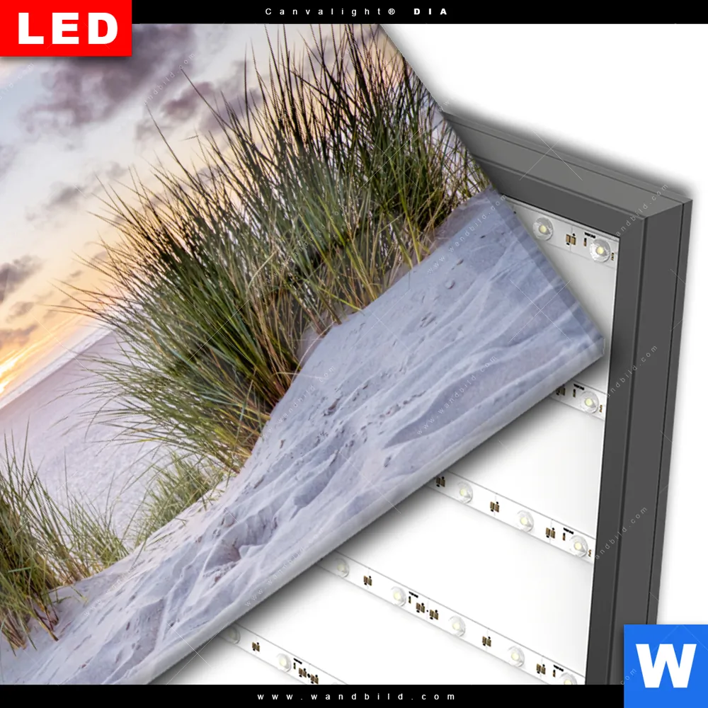 Wechselmotiv Acrylglas Canvalight® DIA | Dünen und Abendsonne | Querformat