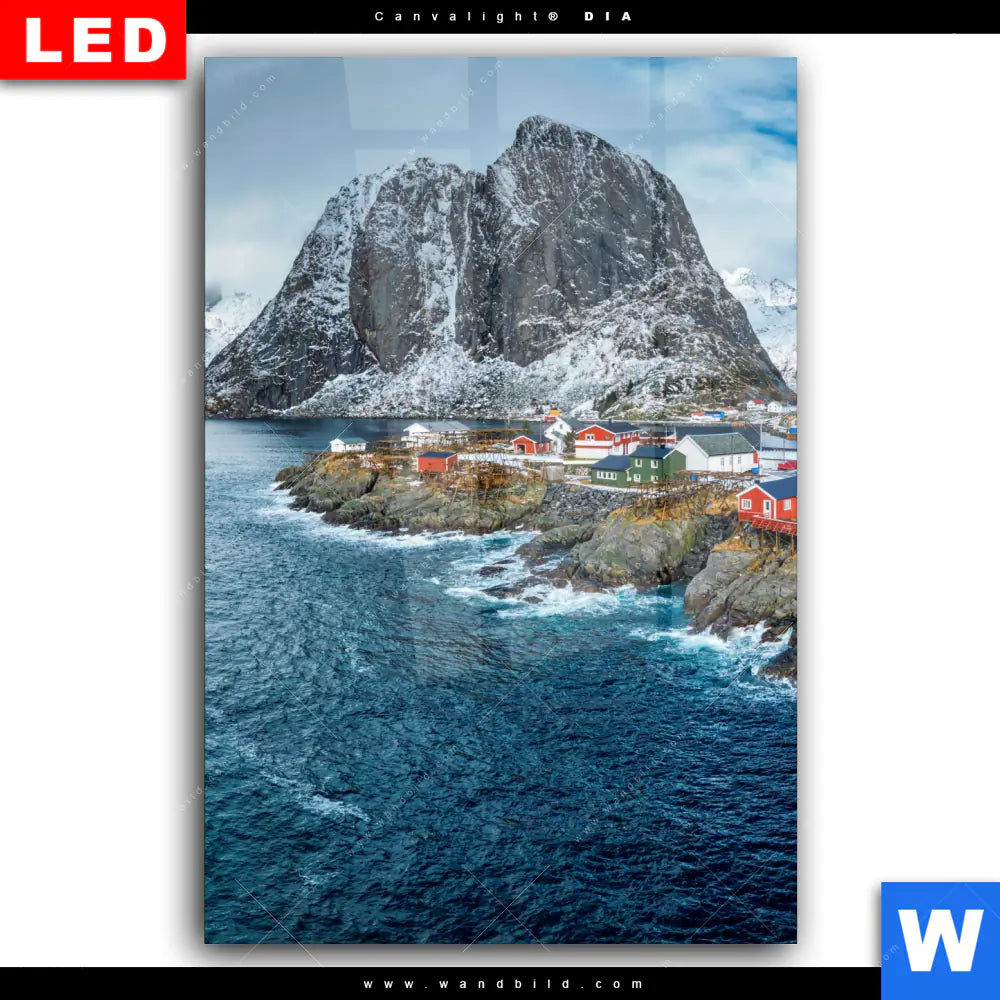 Wechselmotiv Acrylglas Canvalight® DIA | Fischerdorf mit roten Häusern | Hochformat
