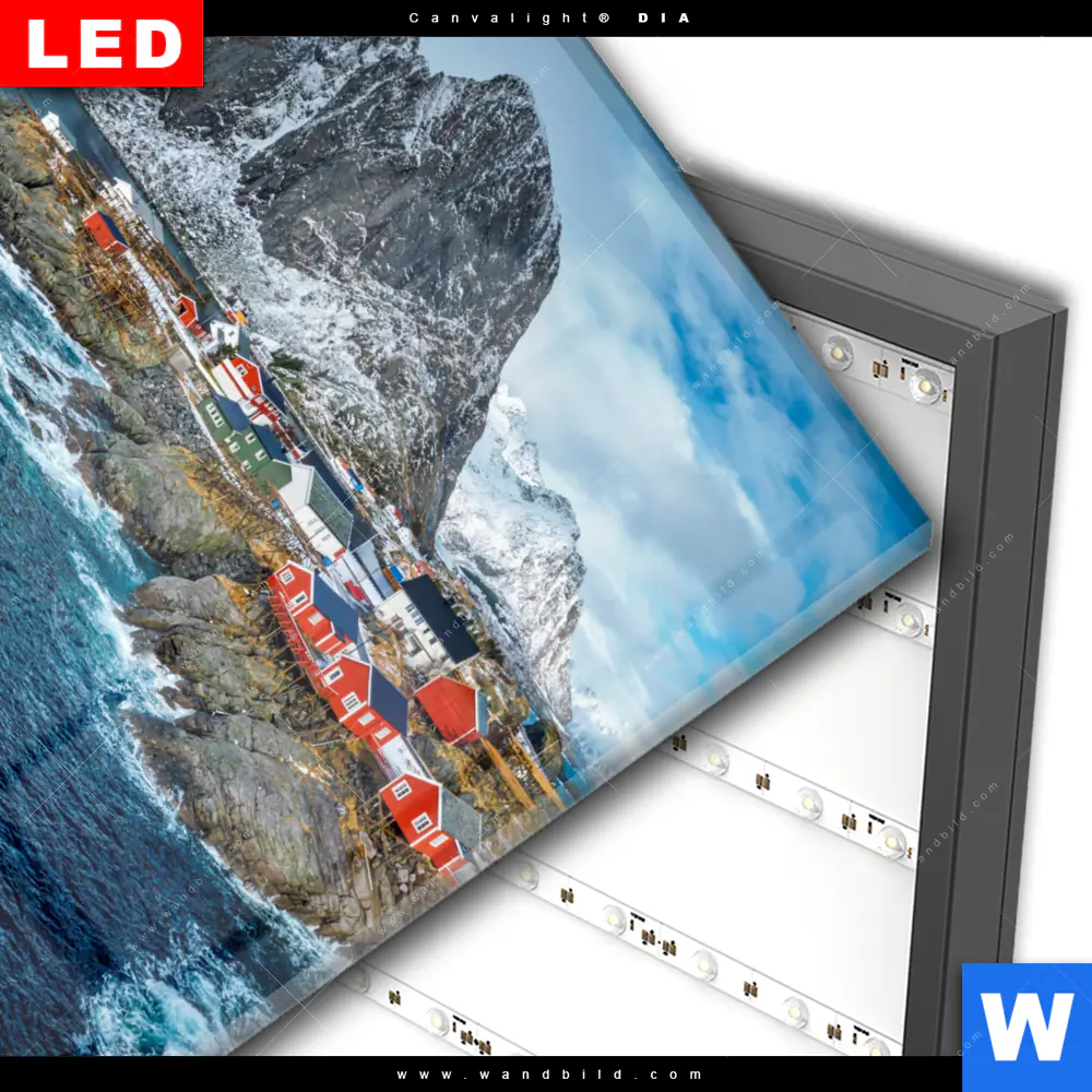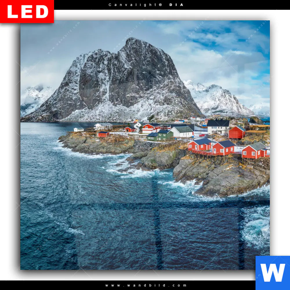 Wechselmotiv Acrylglas Canvalight® DIA | Fischerdorf mit roten Häusern | Quadrat