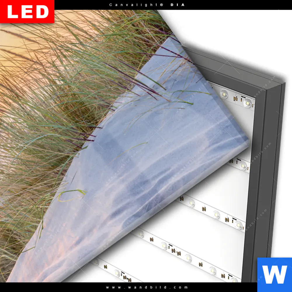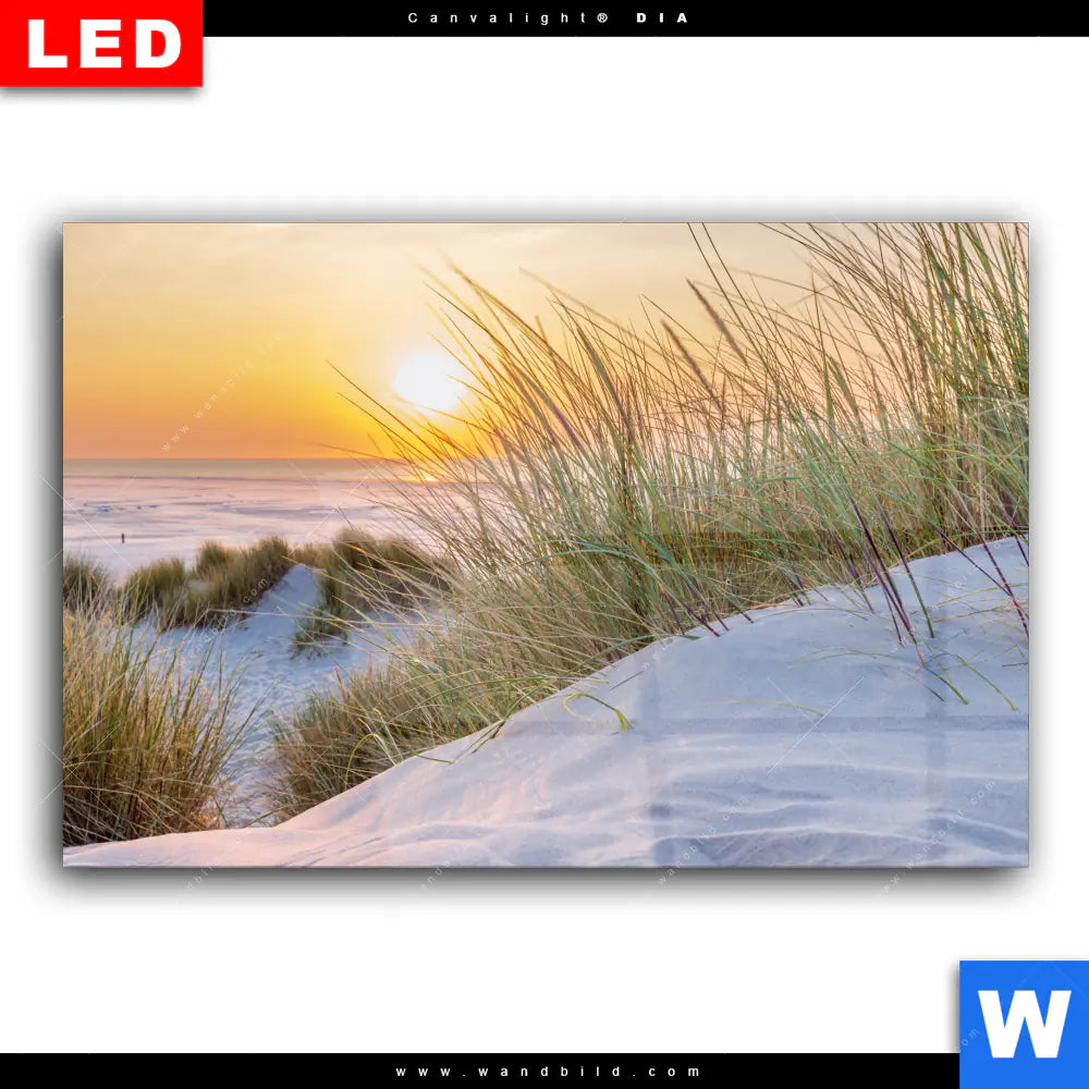 Wechselmotiv Acrylglas Canvalight® DIA | Goldenes Licht über Sanddünen | Querformat