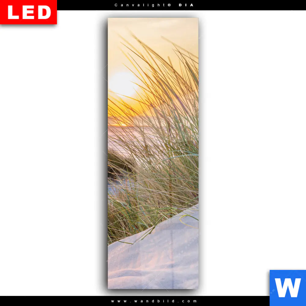Wechselmotiv Acrylglas Canvalight® DIA | Goldenes Licht über Sanddünen | Schmal