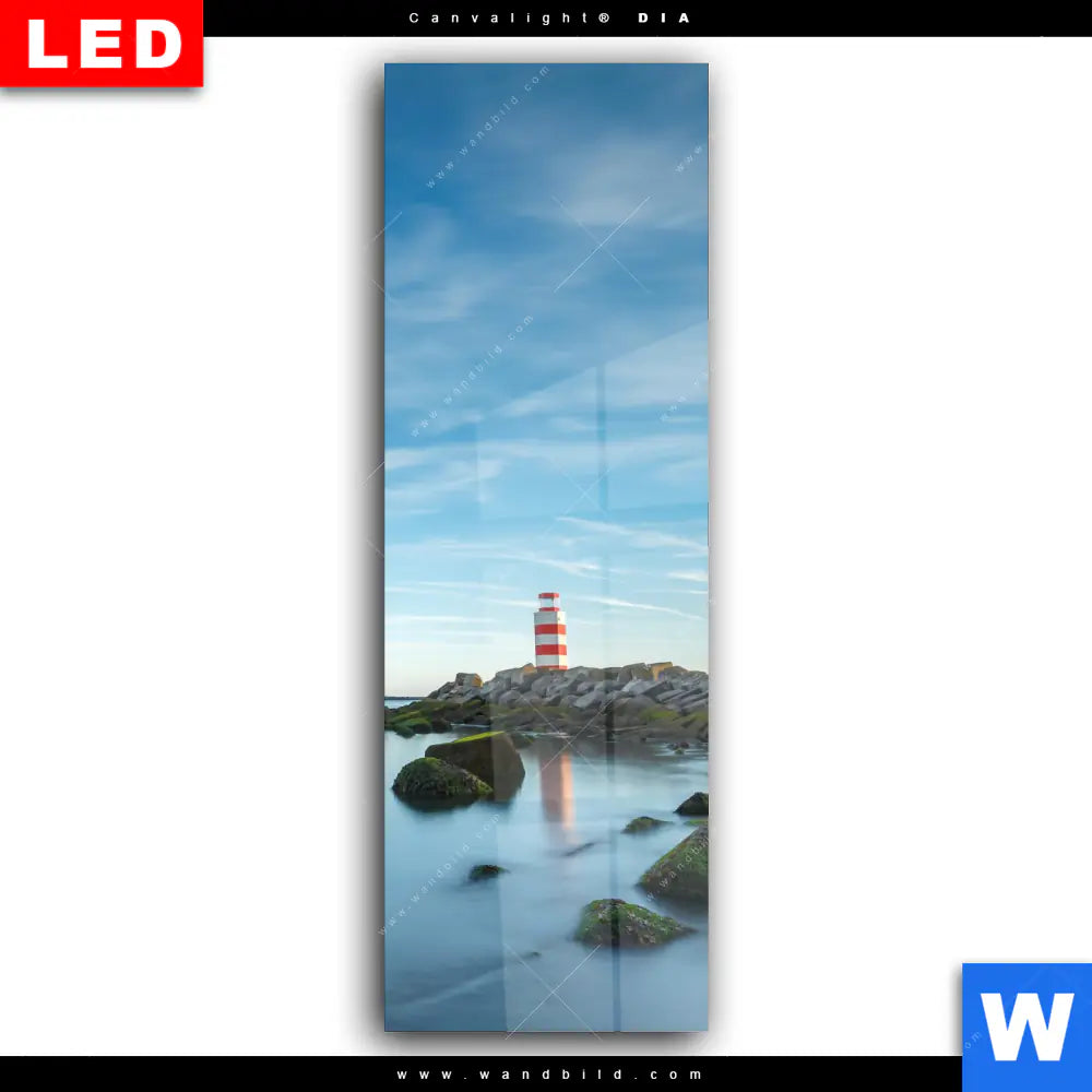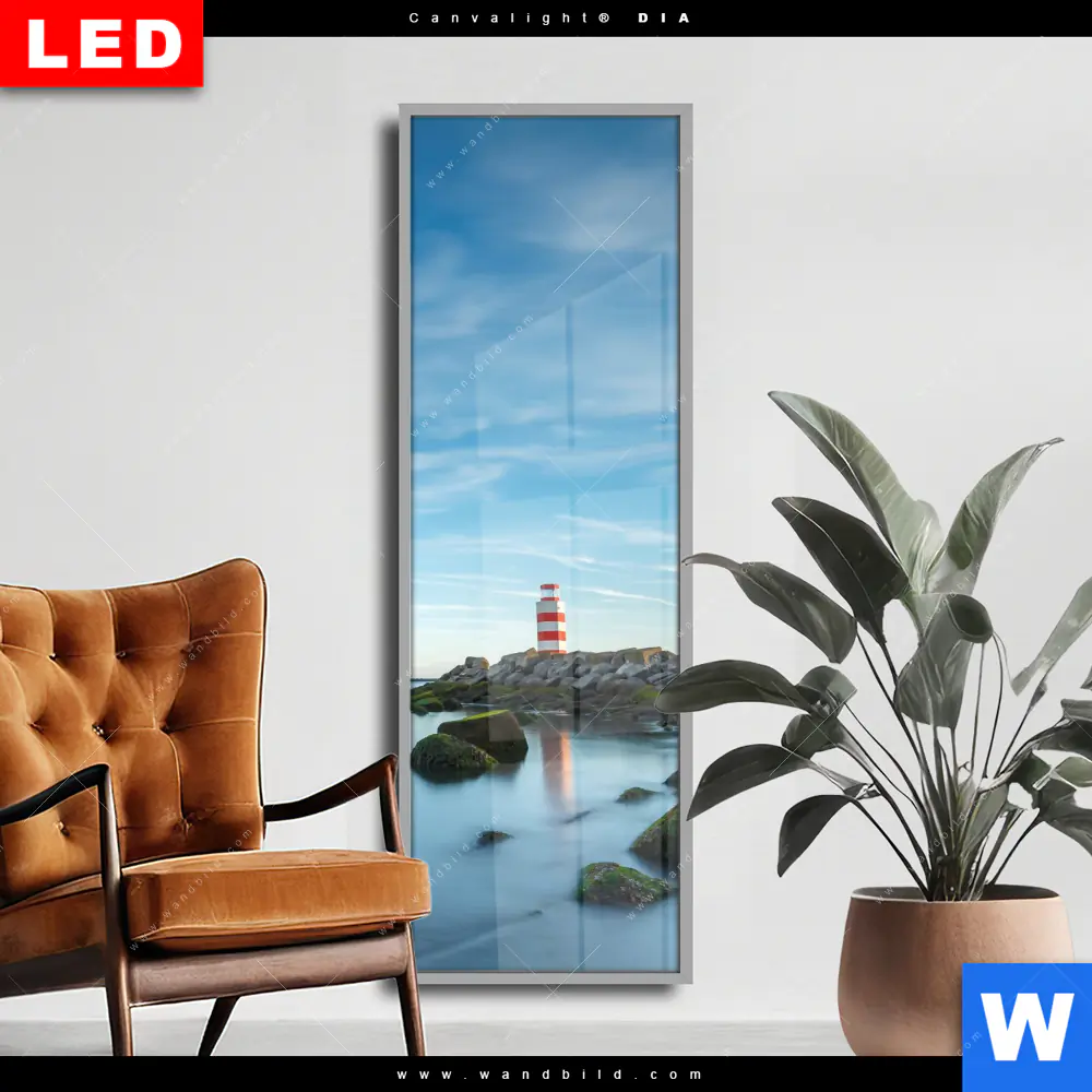 Wechselmotiv Acrylglas Canvalight® DIA | Leuchtturm an der Nordsee | Schmal