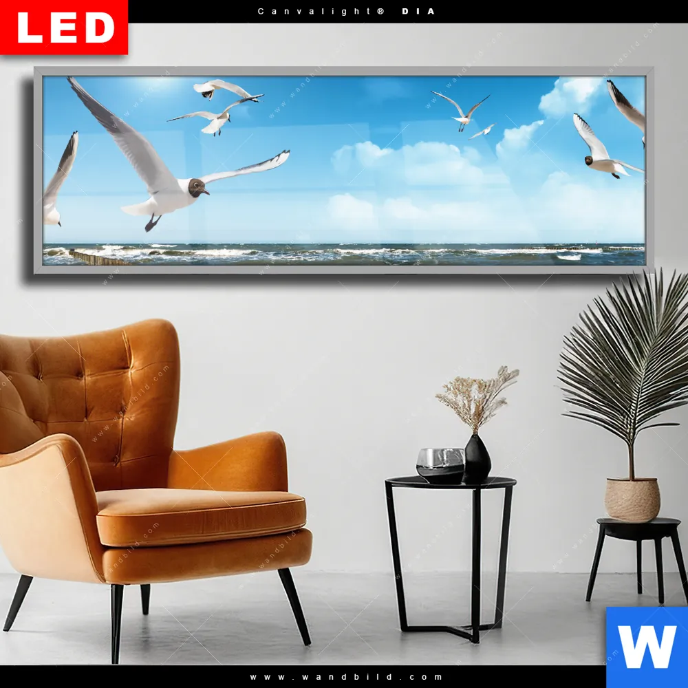 Wechselmotiv Acrylglas Canvalight® DIA | Ostseeküste & Möwen | Panorama