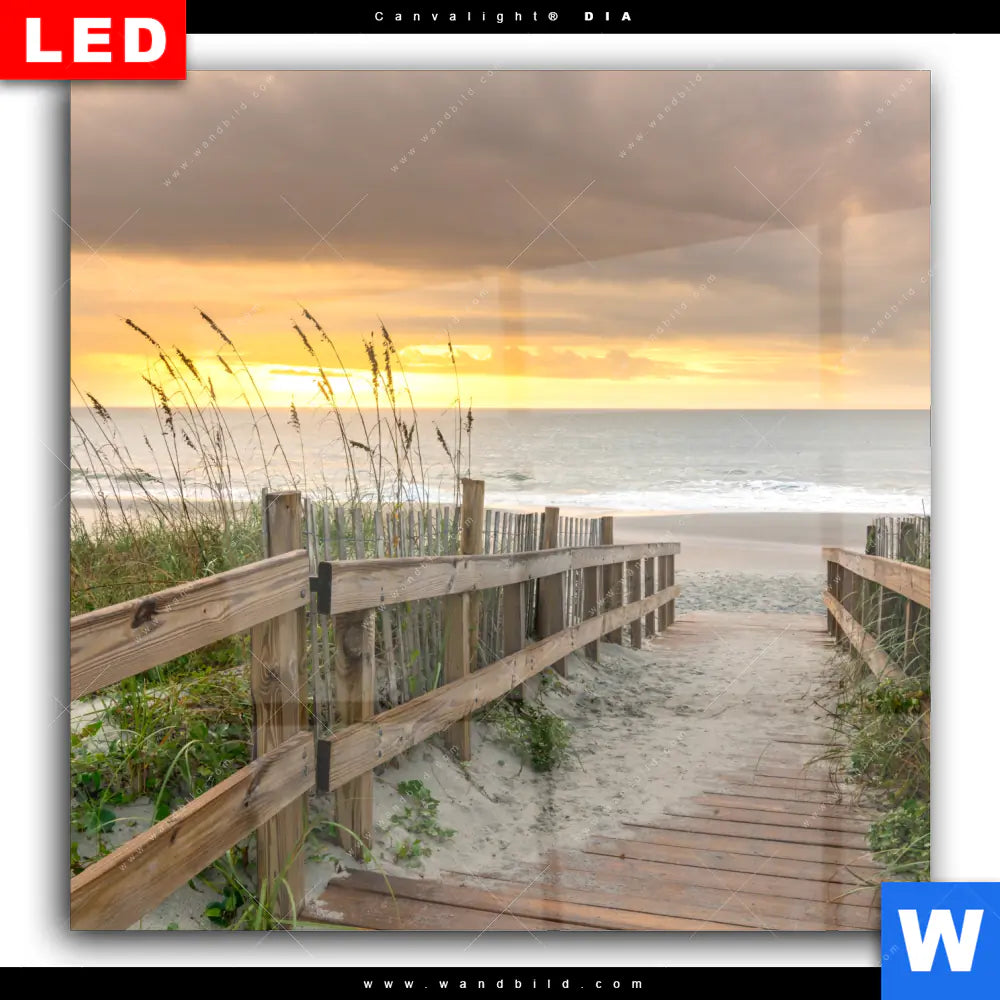 Wechselmotiv Acrylglas Canvalight® DIA | Sonnenuntergang am Strandweg | Quadrat