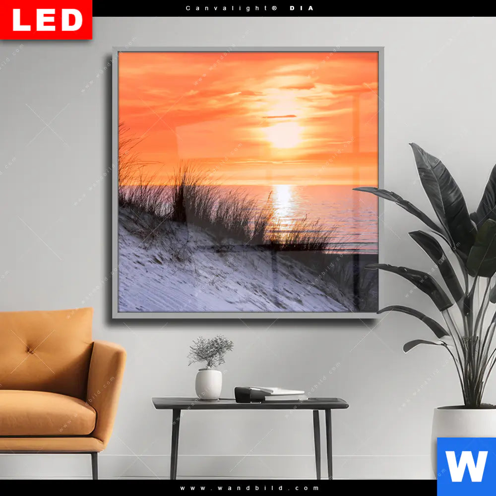 Wechselmotiv Acrylglas Canvalight® DIA | Sonnenuntergang mit Düne und Meer | Quadrat