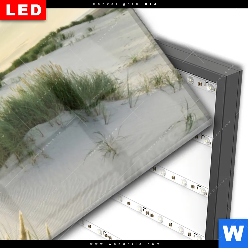 Wechselmotiv Acrylglas Canvalight® DIA | Strand mit Sanddünen | Panorama
