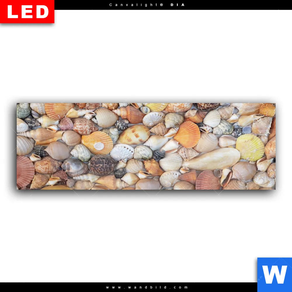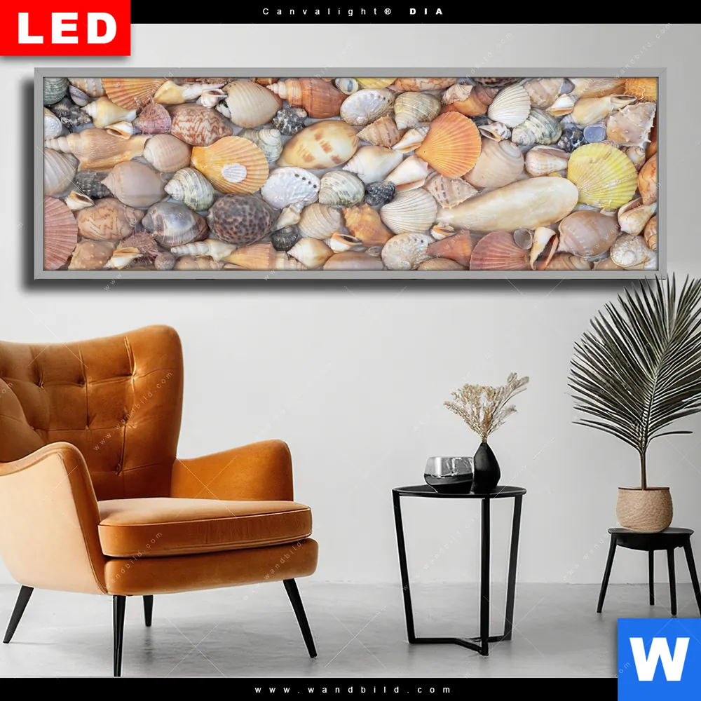 Wechselmotiv Acrylglas Canvalight® DIA | Viele Muscheln | Panorama