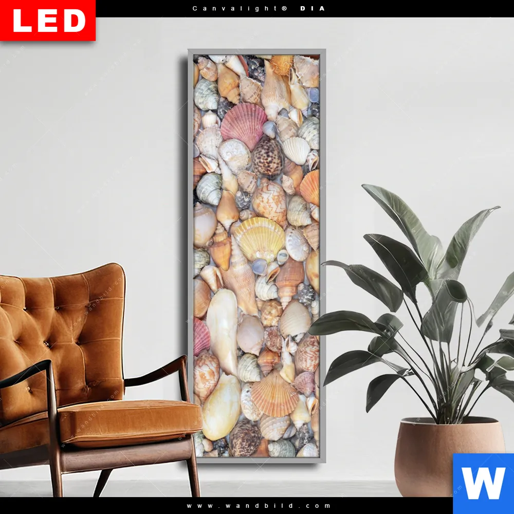 Wechselmotiv Acrylglas Canvalight® DIA | Viele Muscheln | Schmal