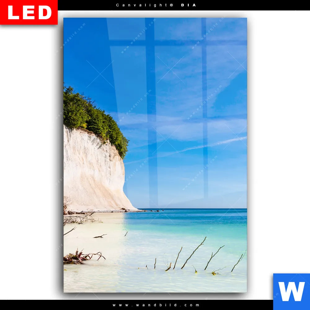 Wechselmotiv Acrylglas Canvalight® DIA | Weiße Kreidefelswand am Meer | Hochformat