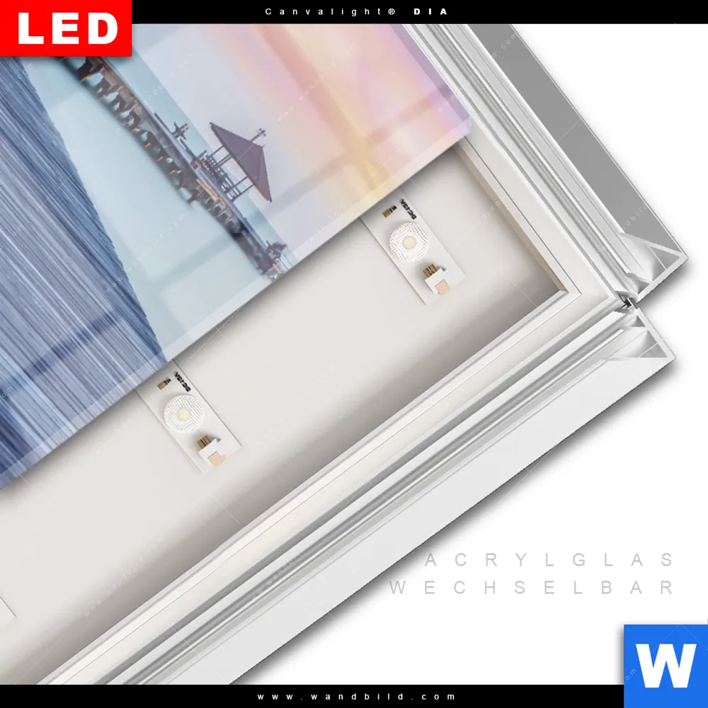LED-Glasbild mit austauschbarem Acrylglas-Druck (Wechselbild)