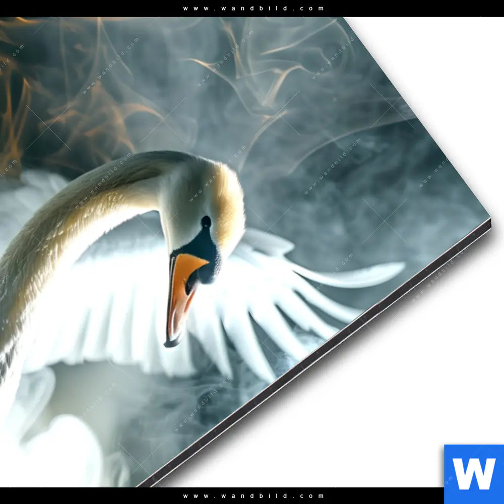 Alu-Dibond Bild | Mystischer Schwan im Nebel | Hochformat