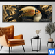 Aluminiumbild gebürstet | Monstera und Tukan Gold | Hochformat