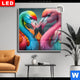 Canvalight® DIA Leuchtbild | Flamingo in bunter Rauchwolke | Schmal
