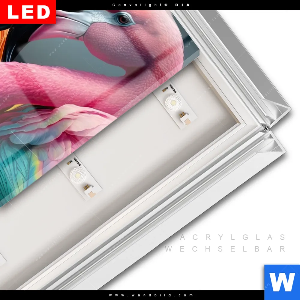 Canvalight® DIA Leuchtbild | Romantische Flamingos | Quadrat