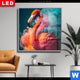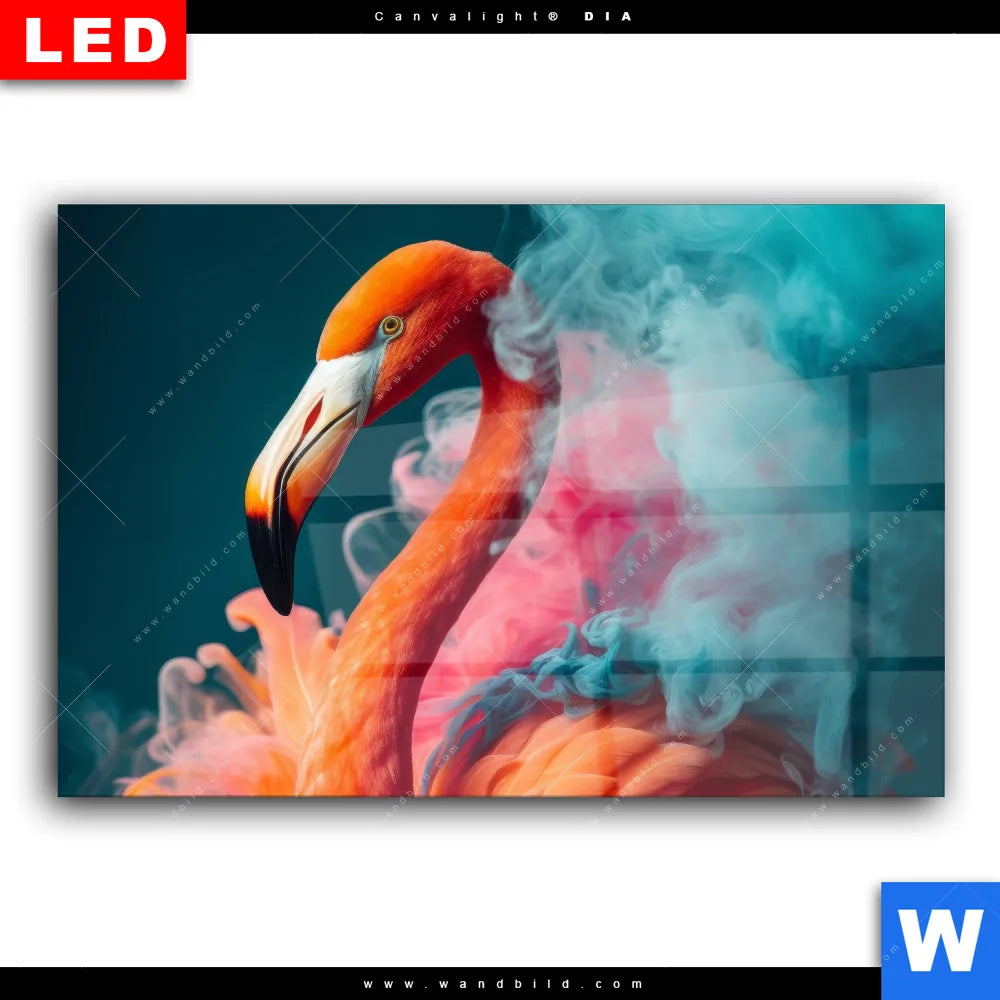 Wechselmotiv Acrylglas Canvalight® DIA | Flamingo in bunter Rauchwolke | Querformat