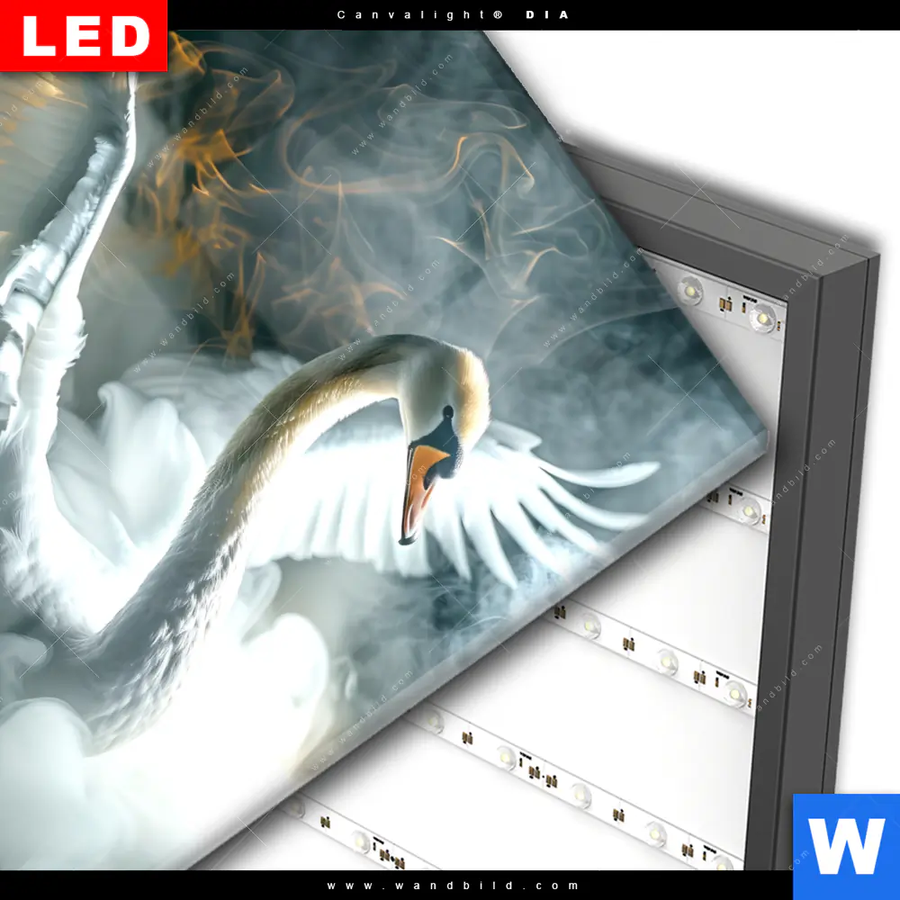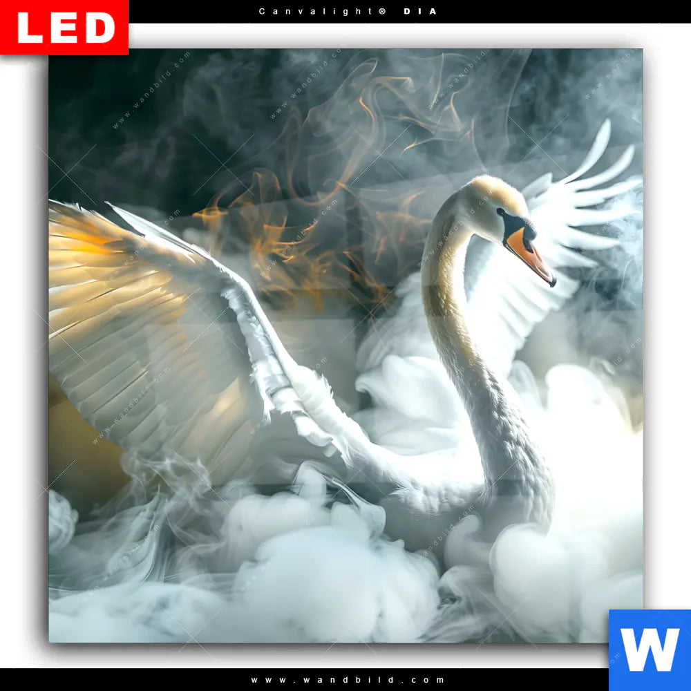 Wechselmotiv Acrylglas Canvalight® DIA | Mystischer Schwan im Nebel | Quadrat