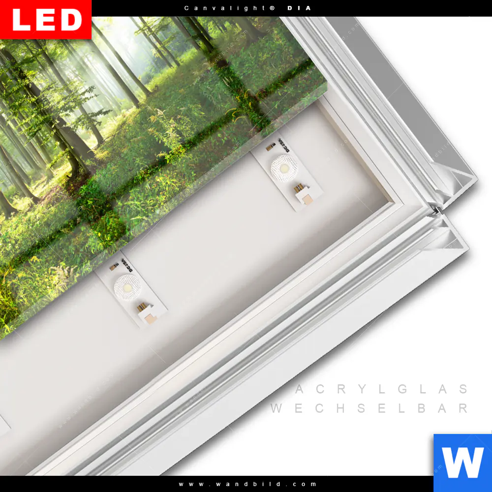 LED-Glasbild mit austauschbarem Acrylglas-Druck (Wechselbild)