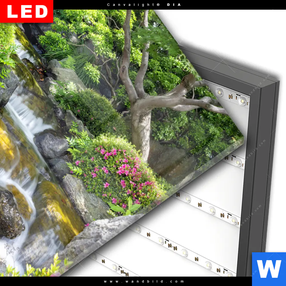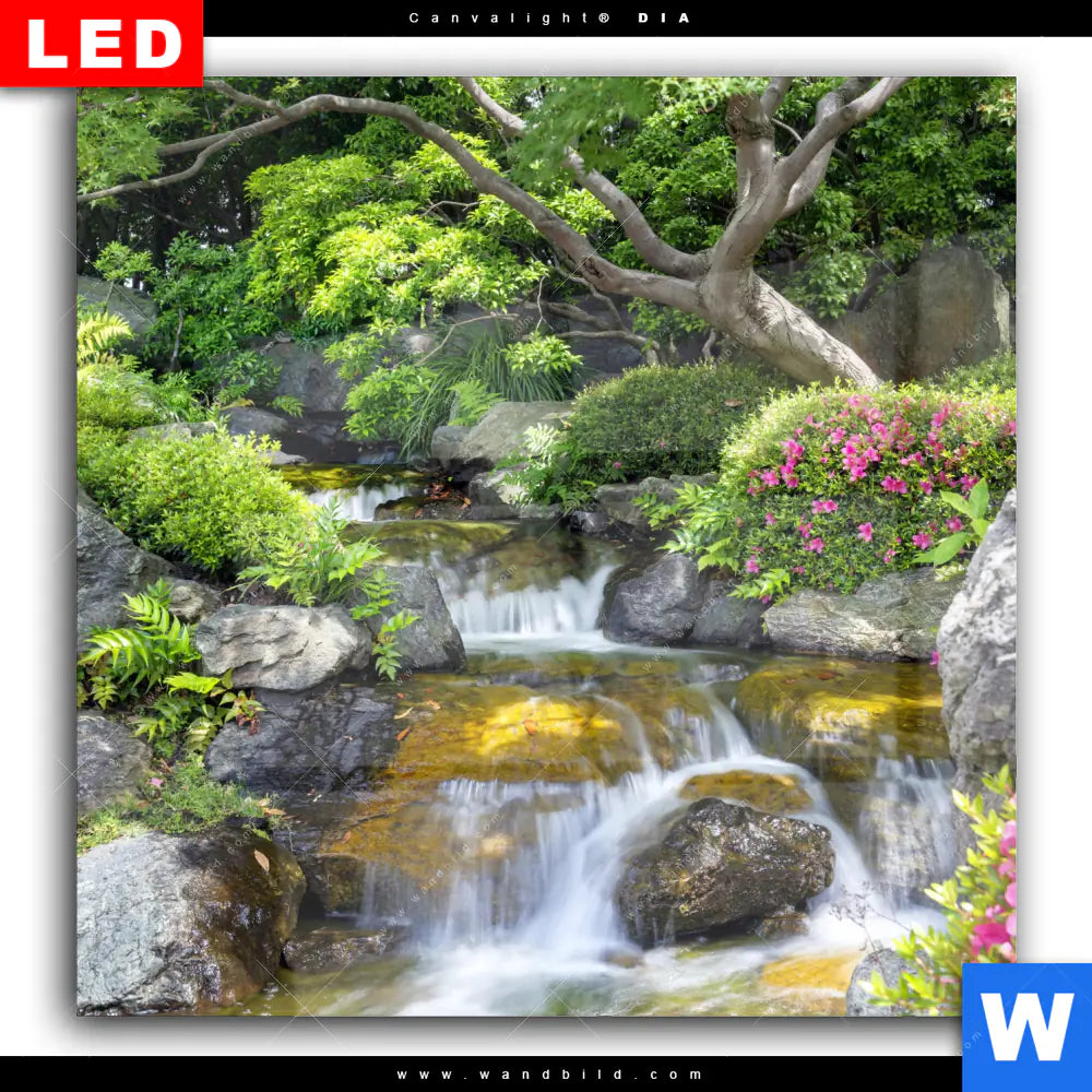 Wechselmotiv Acrylglas Canvalight® DIA | Japanischer Garten mit Wasserlauf | Quadrat
