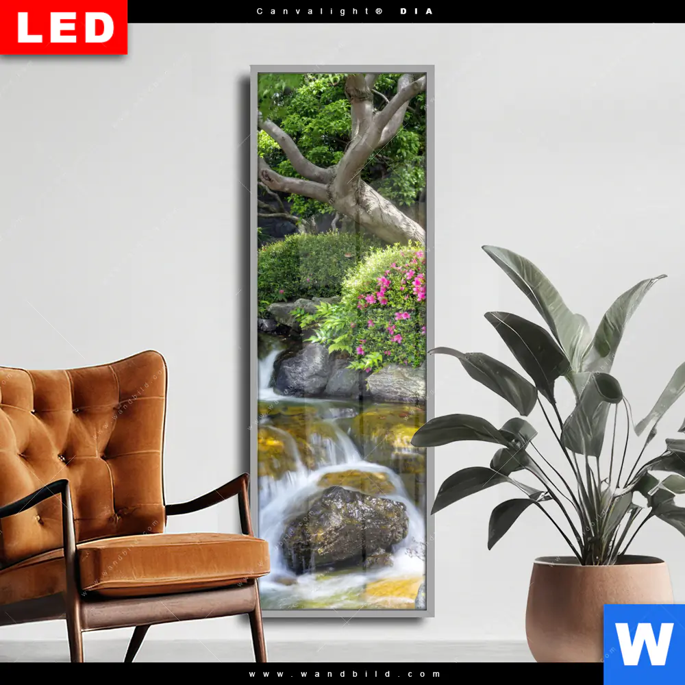Wechselmotiv Acrylglas Canvalight® DIA | Japanischer Garten mit Wasserlauf | Schmal