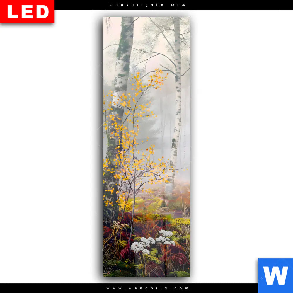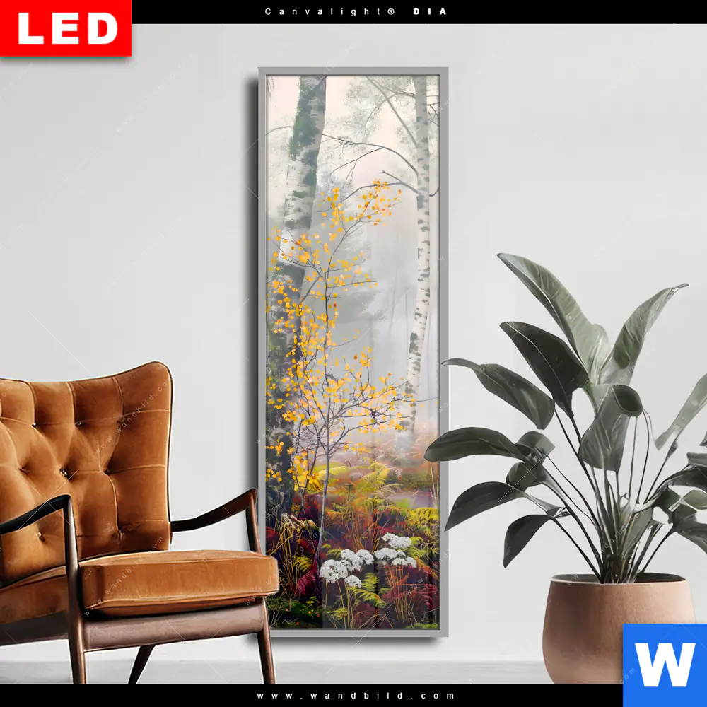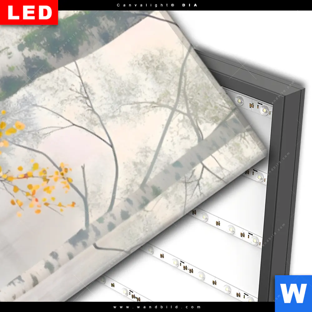 Wechselmotiv Acrylglas Canvalight® DIA | Naturidylle - Birken im Nebel | Schmal