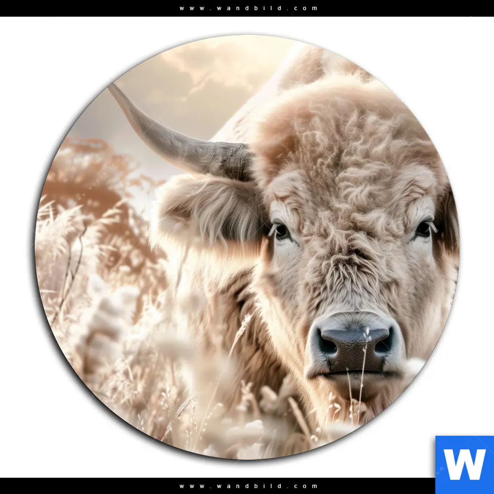 Aluminiumbild gebürstet | Rind - Kraft der Stille | Rund
