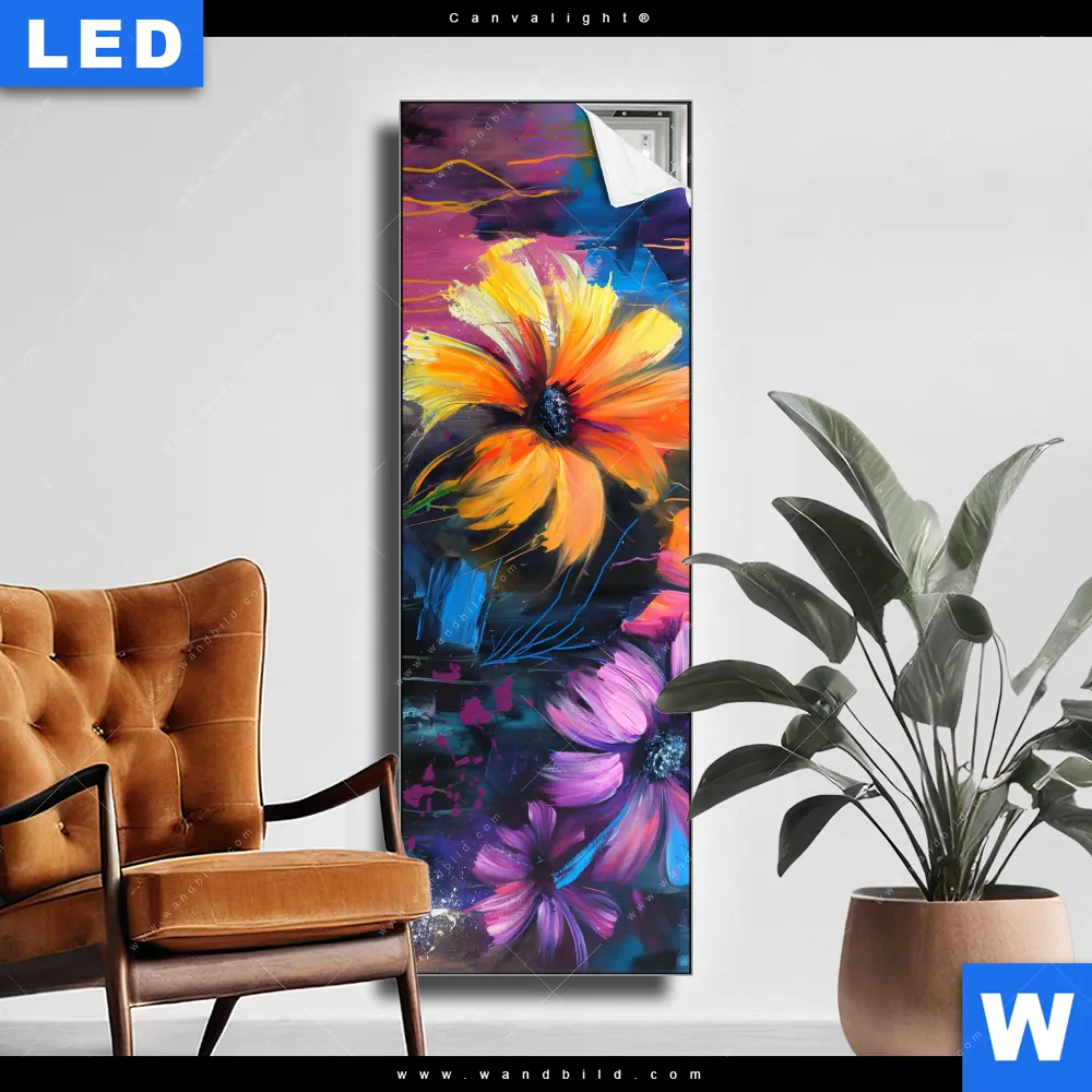 Canvalight® Leuchtbild | Abstrakte Blumenpracht | Schmal