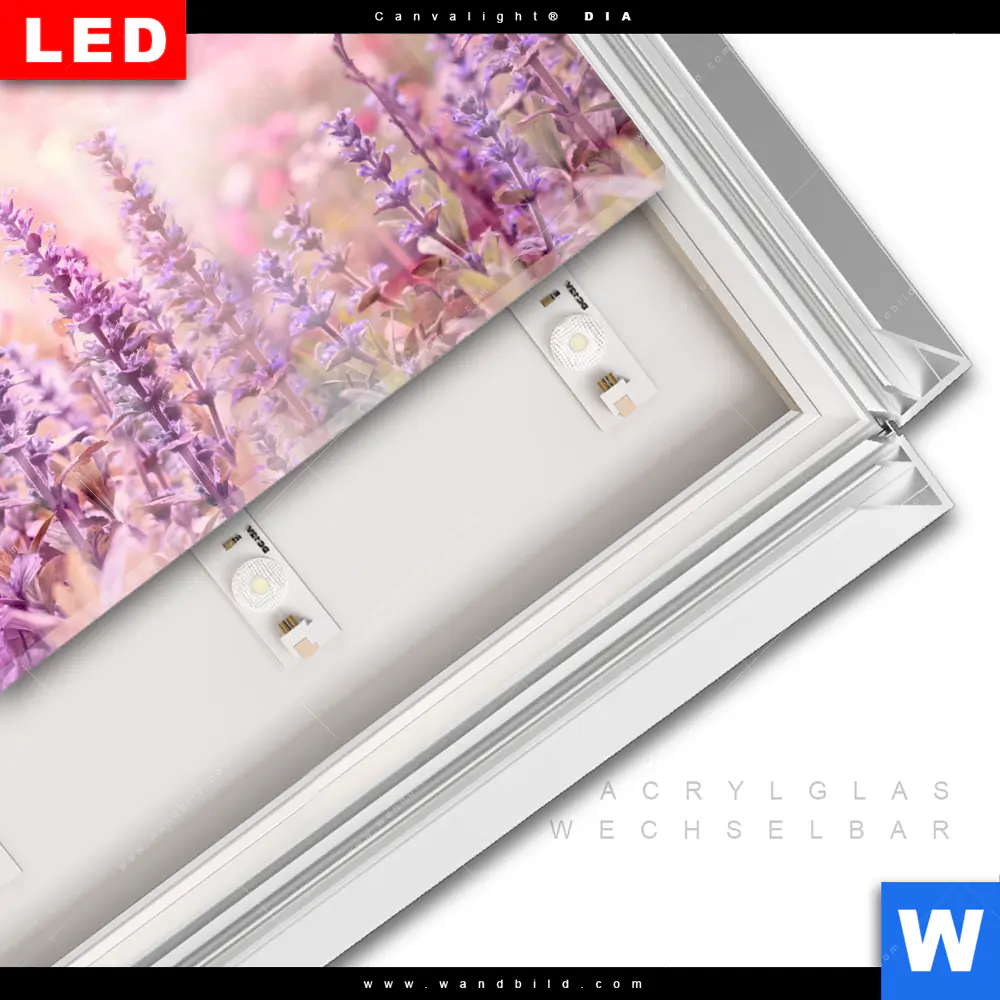 LED-Glasbild mit austauschbarem Acrylglas-Druck (Wechselbild)