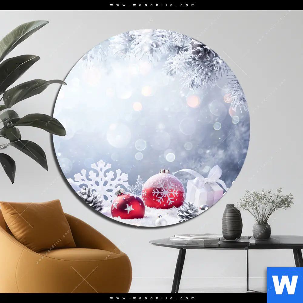 Alu-Dibond Bild | Weihnachtskugeln im Winterwunderland | Rund