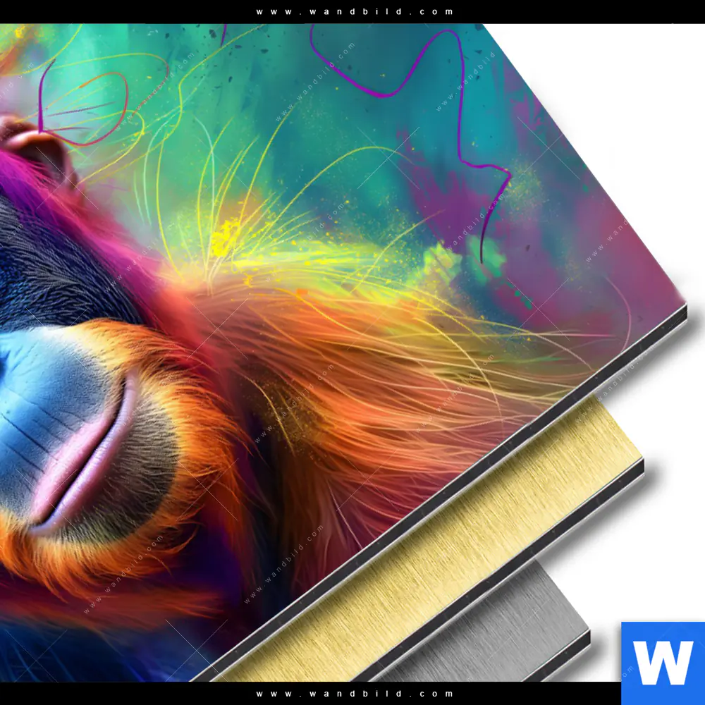 Aluminiumbild gebürstet | Orang-Utan in Regenbogenfarben | Querformat