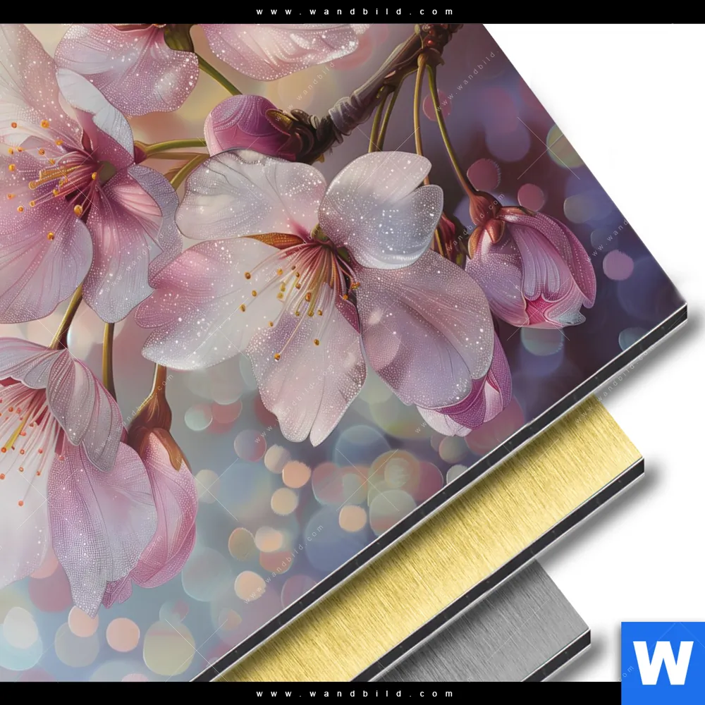 Aluminiumbild gebürstet | Romantische Kirschblüten | Rund