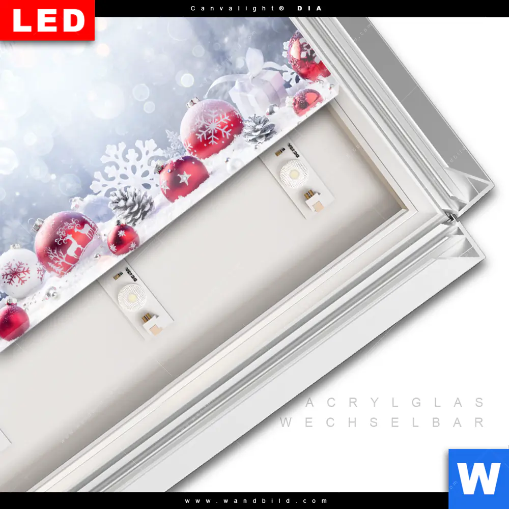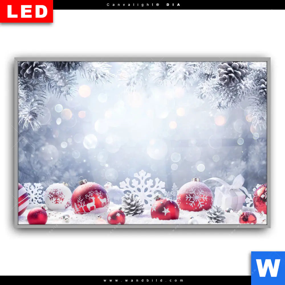 Canvalight® DIA Leuchtbild | Weihnachtskugeln im Winterwunderland | Querformat