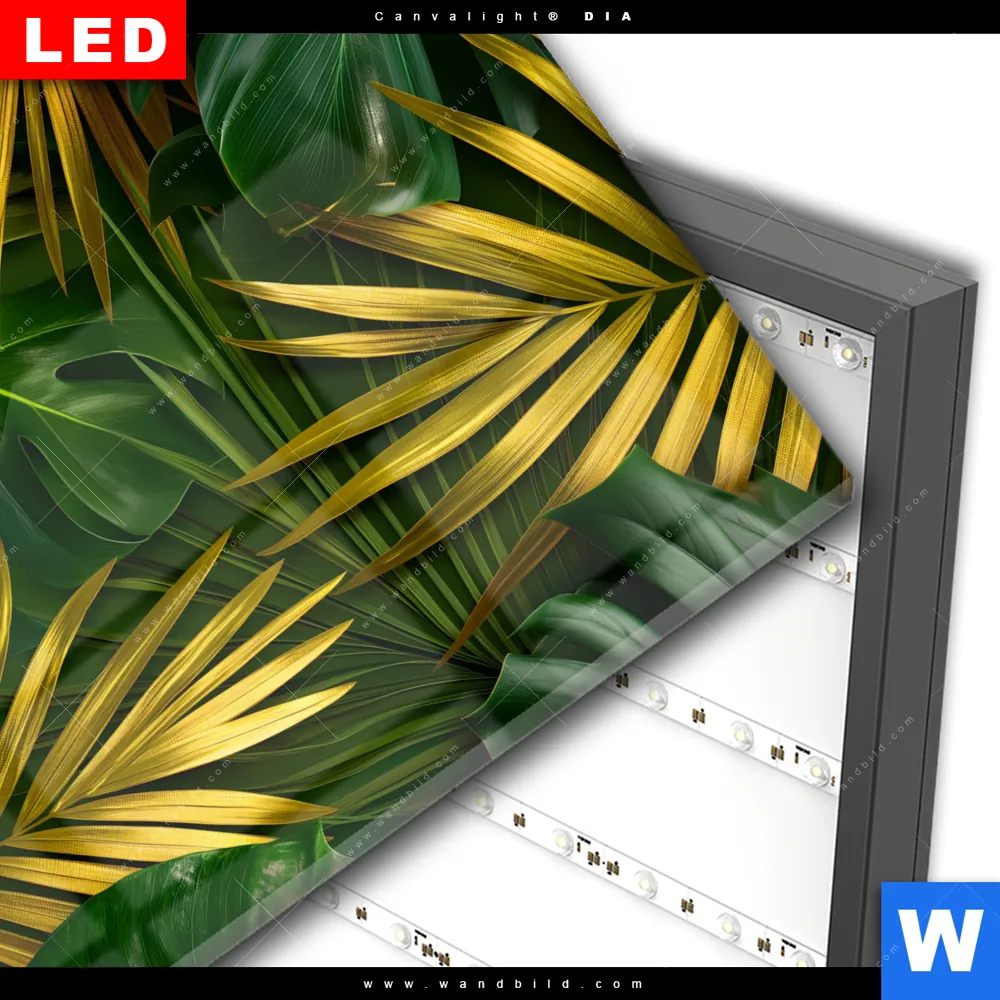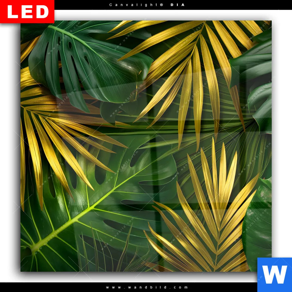 Wechselmotiv Acrylglas Canvalight® DIA | Blätter Gold Grün | Quadrat