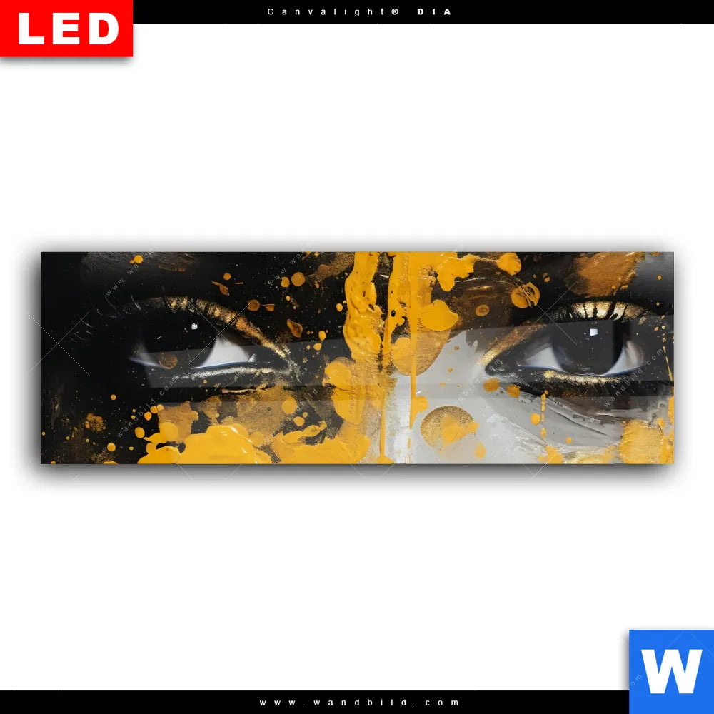 Wechselmotiv Acrylglas Canvalight® DIA | Frau mit Goldfarbe | Panorama