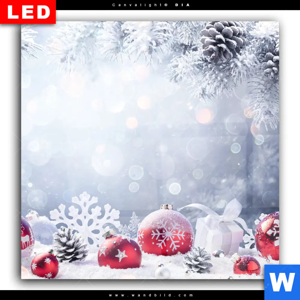 Wechselmotiv Acrylglas Canvalight® DIA | Weihnachtskugeln im Winterwunderland | Quadrat