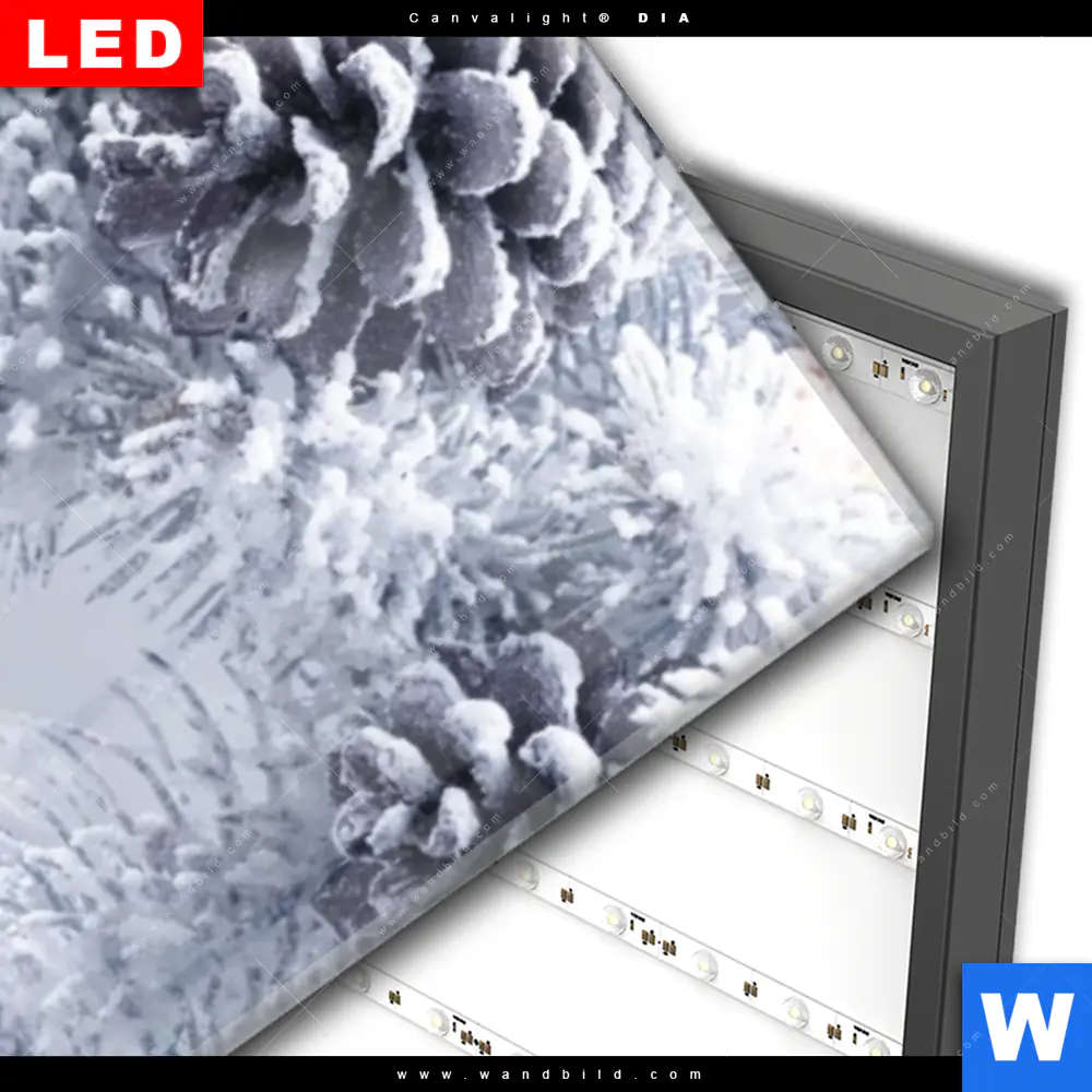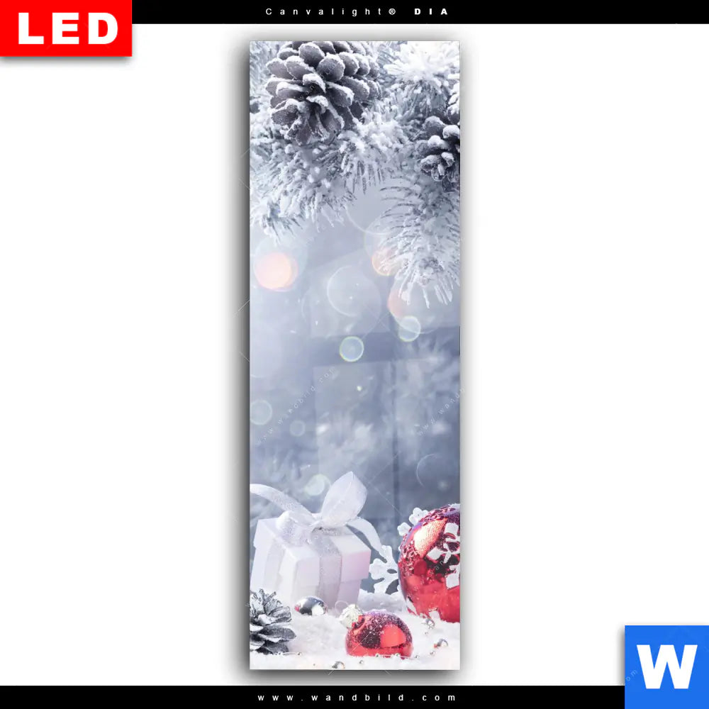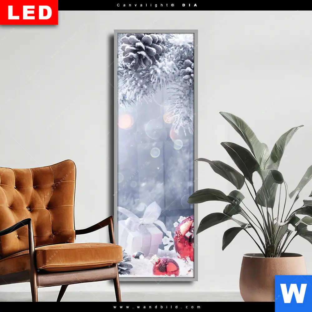 Wechselmotiv Acrylglas Canvalight® DIA | Weihnachtskugeln im Winterwunderland | Schmal