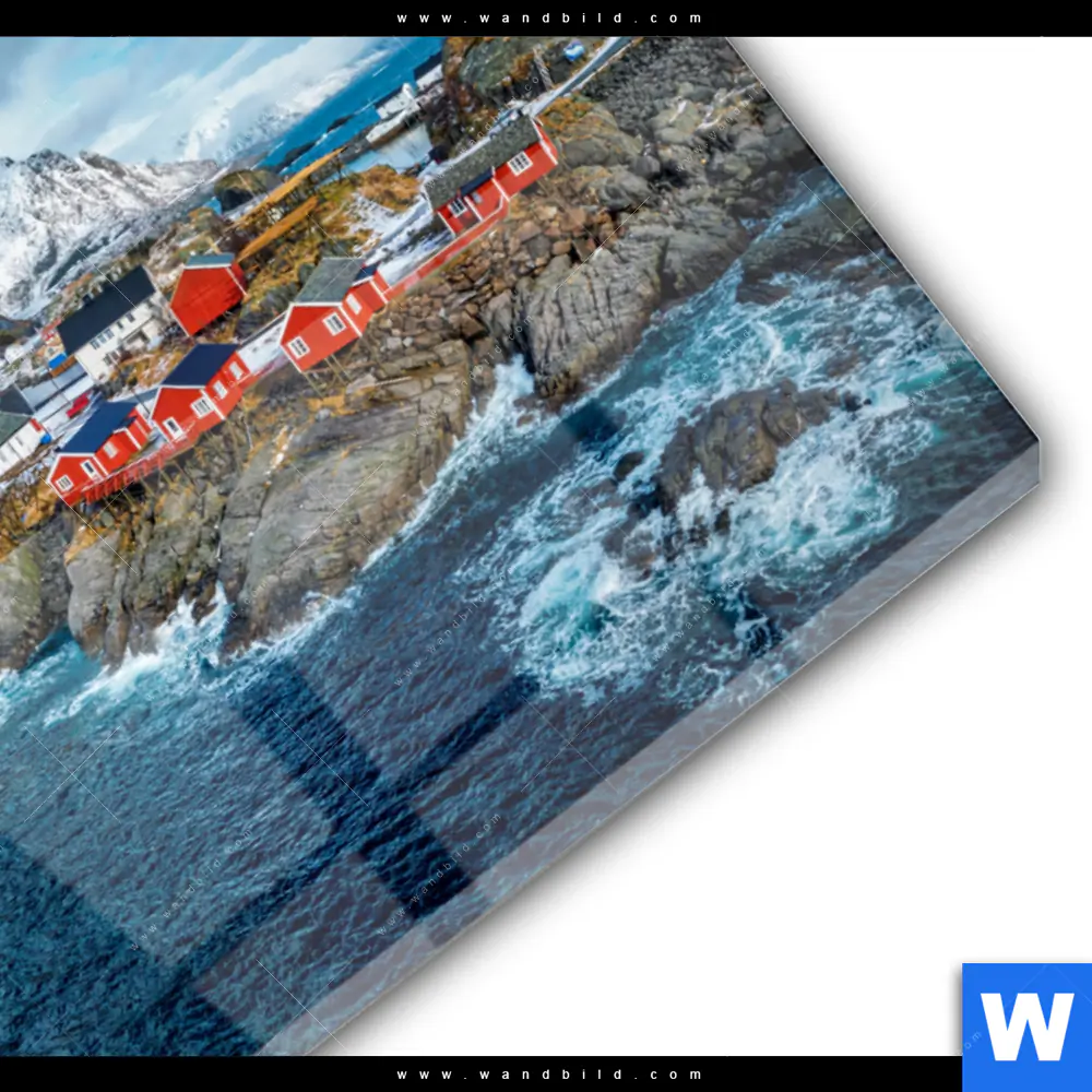 Acrylglasbild | Fischerdorf mit roten Häusern | Querformat