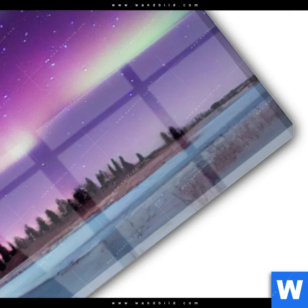 Acrylglasbild | Nordlichter über einem Holzhaus | Panorama