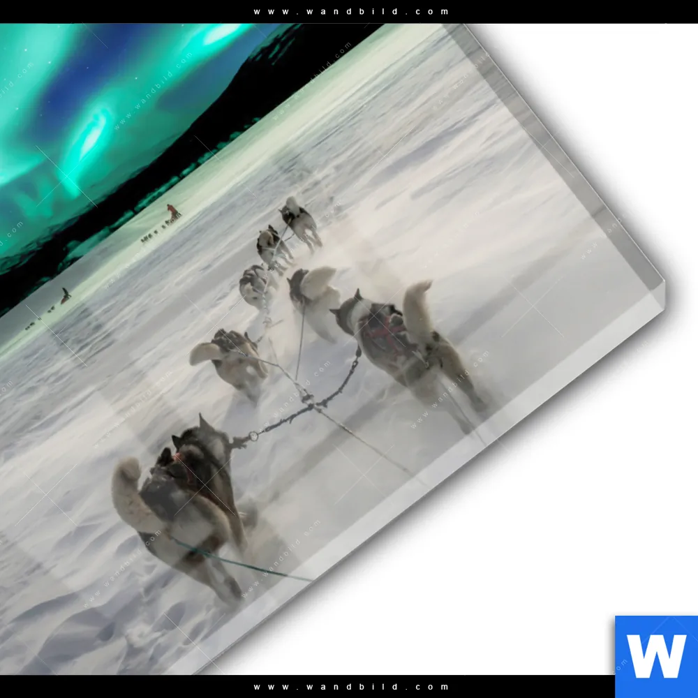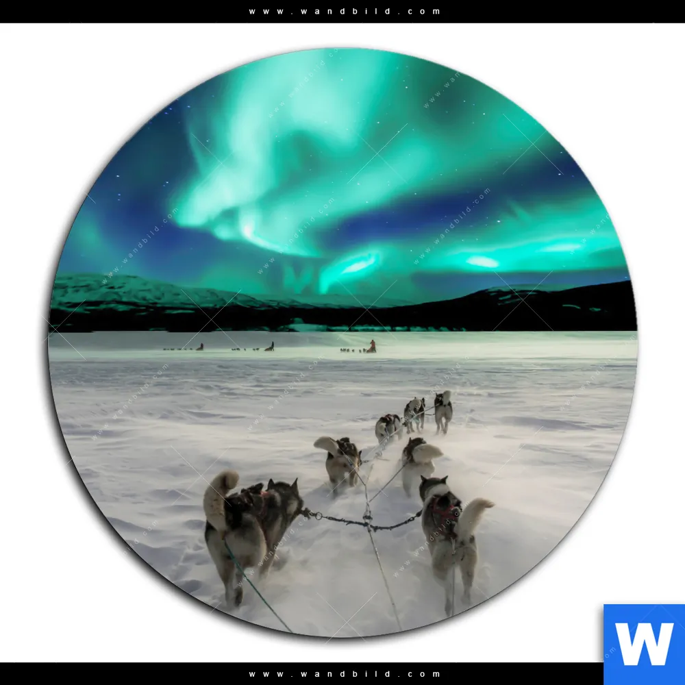 Acrylglasbild | Nordlichter und Schlittenhunde | Rund