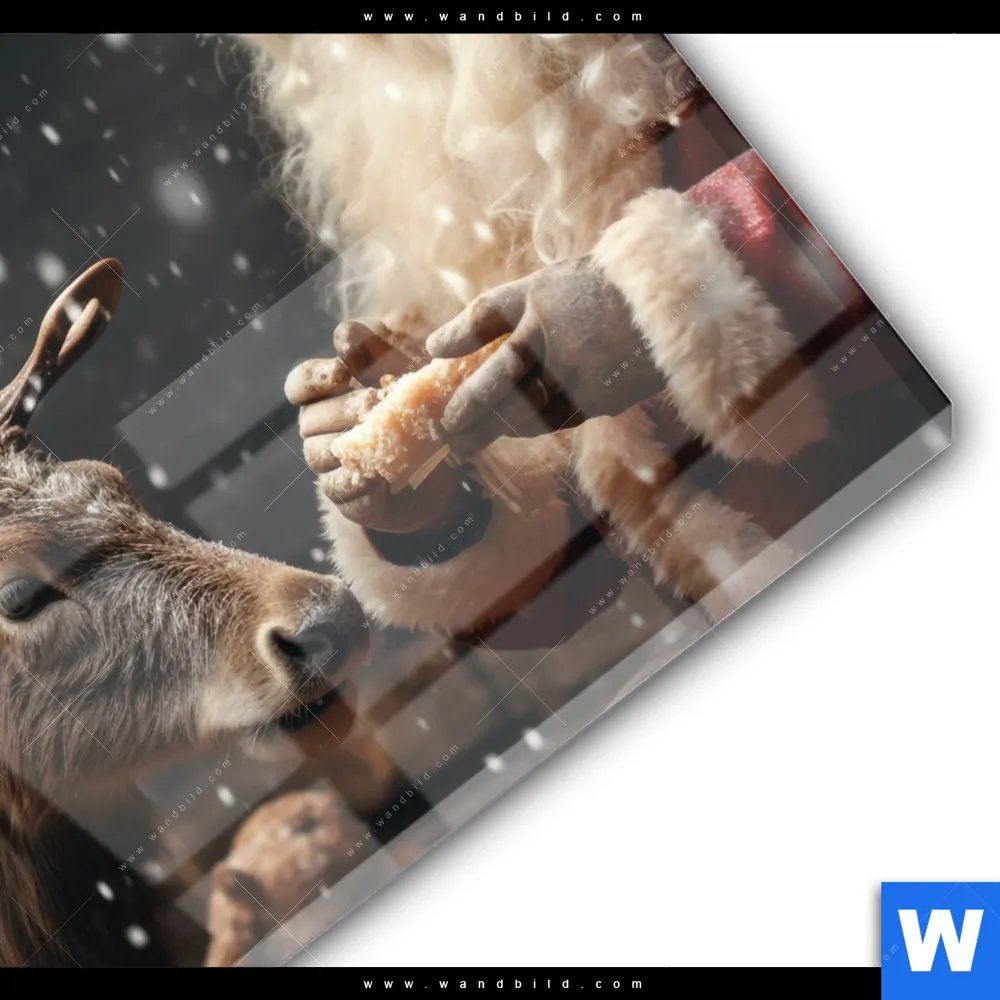 Acrylglasbild | Weihnachtsmann füttert Rentier | Quadrat