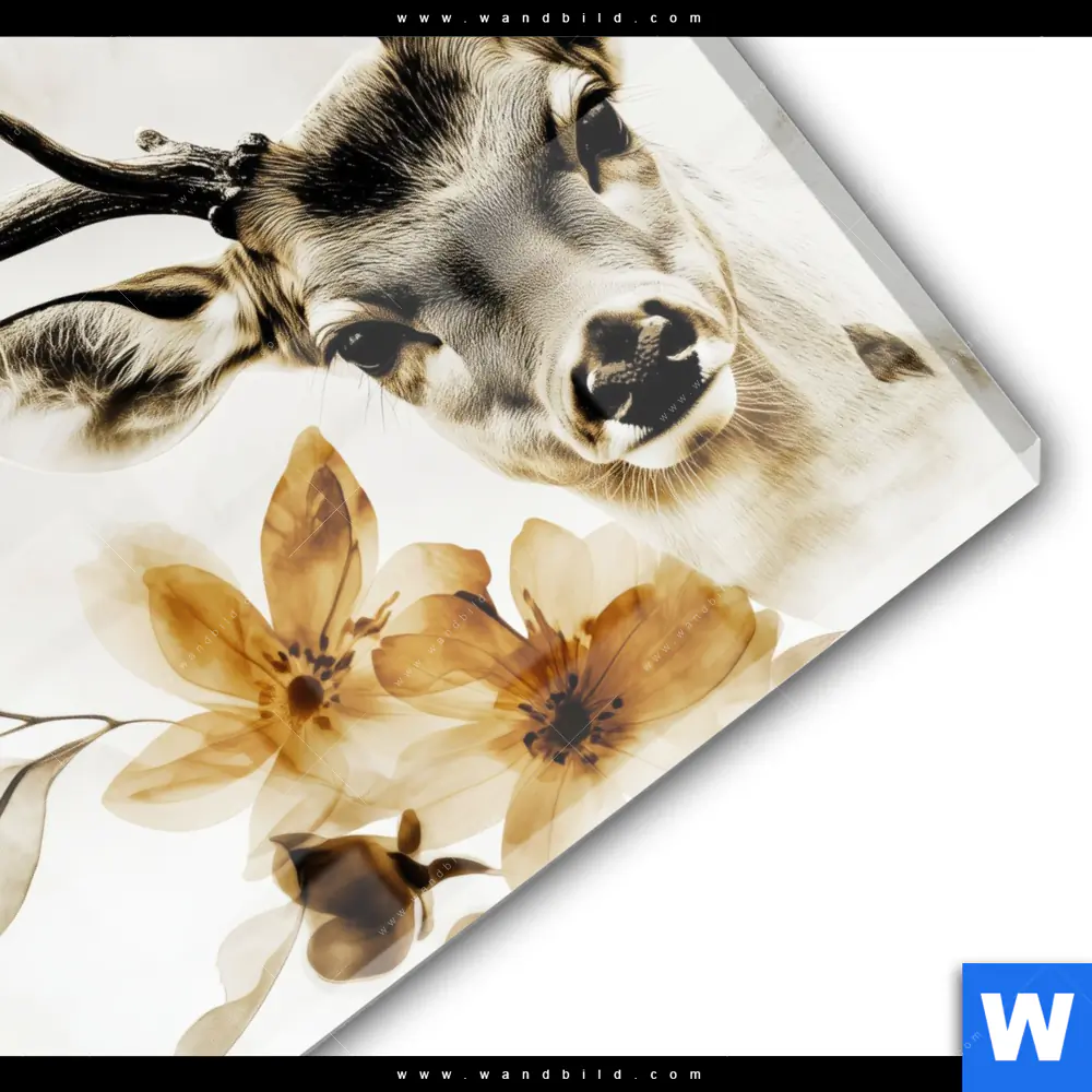 Acrylglasbild | Blütenpracht trifft Geweih | Quadrat