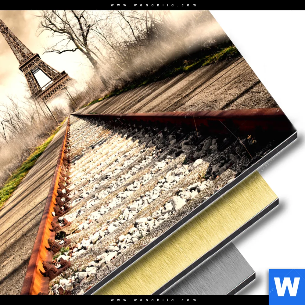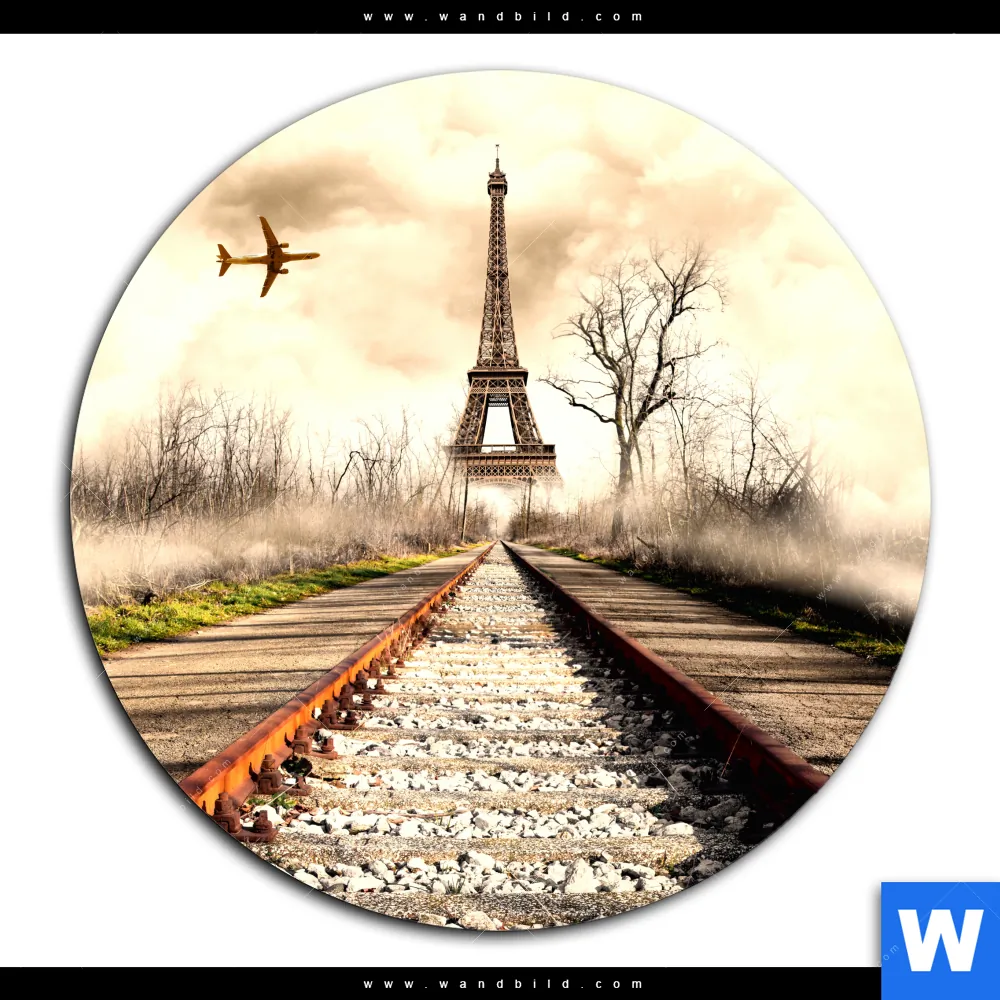 Aluminiumbild gebürstet | Eifelturm am Abstellgleis | Rund