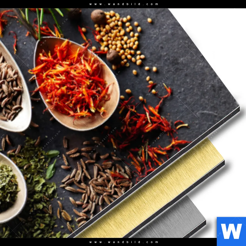 Aluminiumbild gebürstet | Gewürze auf Löffeln No. 2 | Schmal